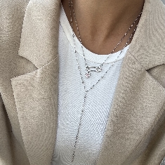 Alttaki toplu Y kesim kolye rodyum kaplamadır. Tüm Gümüş renk kombinlerinize uyum sağlar