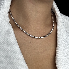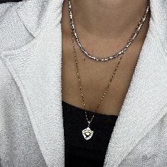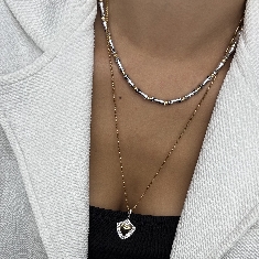 En üstteki model aralıklı gold dorika detayına sahip gümüş ve goldun bir arada uyumunu yakalayarak ister gümüş, isterseniz de gold renk kolye seçenekleri ile kullanıma uygun hale getirilmiştir.
